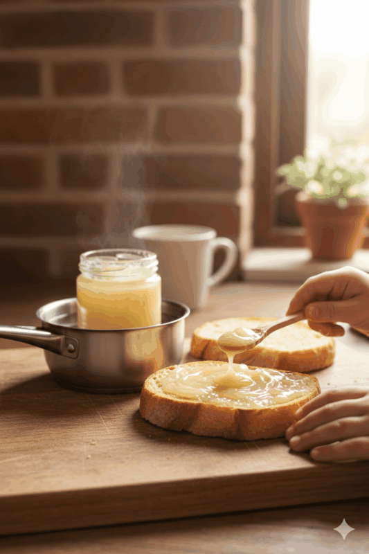 - Disfrutarla cristalizada: ¡Esta es mi opción favorita! Cuando la miel cristaliza, adquiere una textura cremosa, casi como una mantequilla dulce. Es perfecta para untar en una buena rebanada de pan tostado. A mis hijas, Irene y Laia, ¡les encanta así! Además, en este estado es mucho más fácil de manejar, no gotea y controlas mejor la cantidad. Y si te gusta cocinar, te va a sorprender. Puedes aprender a usarla en platos salados y dulces en nuestro post sobre la miel de montaña en la cocina.