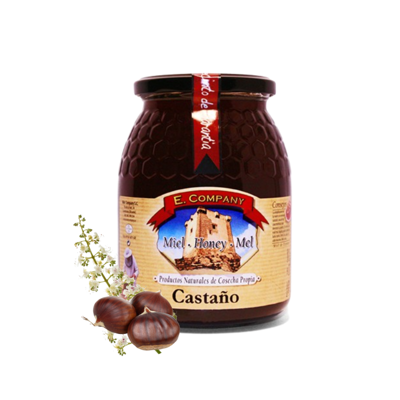 Con un sabor robusto y tonalidad oscura, la miel de castaño tiene propiedades antioxidantes y antiinflamatorias, siendo beneficiosa para el sistema cardiovascular.